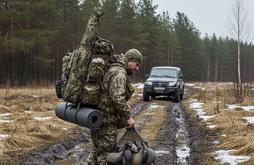Подготовка к весенней охоте не заканчивается сбором снаряжения. Не менее важно заранее продумать подъезды и общую логистику выхода. Весной ситуация на местности меняется быстро: участки, которые раньше казались надежными, могут оказаться размытыми, затопленными или непроходимыми.