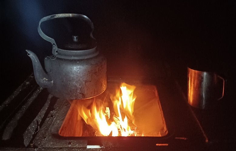 Через полчаса на столе, из гладко обтёсанных бревёшек, накрытых старенькой клеёнкой, стояла алюминиевая чашка. Незримо плыл ароматный запах гречневой каши. В чёрном, как смоль, пятилитровом чугунке, утопленном узким дном в буржуйку, булькала пара рябчиков. Их тушки, как живые, всплывали на поверхность кипящей воды в тусклом свете «летучей мыши» и, мелькнув белым мясом грудинок, вновь исчезали в глубине чугунка. Степан наспех проверил солёность бульона. Слегка обжёг губы, тихо выругался, но поймав на себе взгляд собаки, посетовал: -Да не жадничал я, поверь мне. Скоро тебе каша подстынет, да и мясца чуть добавлю; твоё здоровье не менее дорого, чем своё.