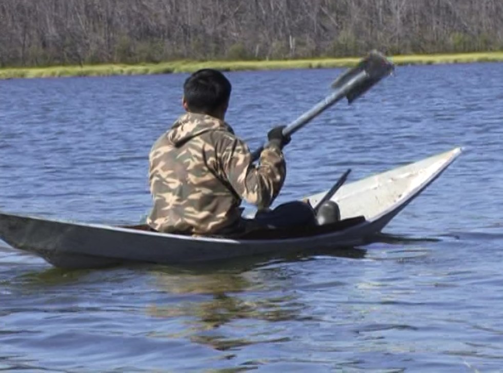 Вот и пришла пора мне прятать видеокамеру в чехол – сегодня ночью наступает сезон охоты на турпана!Возвращаюсь на базу. Ну, это громко сказано – база, просто грубо сколоченный из горбылей домик. Весной в домик опять заходил наш «сосед» – Миша Топтыгин. Интересно заметить: несмотря на то, что дверь всегда оставляется открытой, медведь не вошел в дверь, а пролез через узкий оконный проем. Быстро пообедав (или позавтракав?), растягиваем пологи и ложимся спать до вечерной зорьки. Просыпаемся от жары. На улице градусов под тридцать – впору искупаться. Вытаскиваем из схронов манки и перебираем их и откладываем в сторону манки, которые нуждаются в ремонте. Егор с Денисом осматривают лодки, что-то подбивают. Колымские лодки-ветки очень маневренны, легки, но вертки. Дно лодки изготовляется из одной узкой доски. Предпочтение дается лиственнице. Бока обшиваются жестью. Садиться неподготовленному человеку на такую ветку опасно. Серега увлеченно фотографируют селезня чирка-клоктуна, который, совершенно не боясь нас, подлетает к лагерю, садится прямо под нашим носом и начинает важно прохаживаться, переваливаясь с боку на бок. Благо на краснокнижных уток никто и не собирается охотиться.