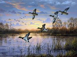 Но отец молчит, он косится на меня, подмигивает. Это меня успокаивает, и я продолжаю вертеть головой по сторонам. Дунул слабый ветерок, сморщил зеркальную гладь, еле слышно зашуршал, переговариваясь между собой камыш. Где-то совсем близко, с соседнего плеса громко хлопая крыльями и издавая призывное «кря, кря» поднялась утка. Пролетела за нами, шурша крыльями. Где-то далеко протрубили журавли. И тишина. И тут над головой что-то с присвистом зашумело, и я увидел, как низко над камышом, описав широкий полукруг, пронеслись и плюхнулись на воду прямо перед скрадком три крупные утки. Я непроизвольно пригнул голову и зажмурился, мелькнула мысль, что утки могут увидеть меня и улетят. Отец тихонько шепчет мне: