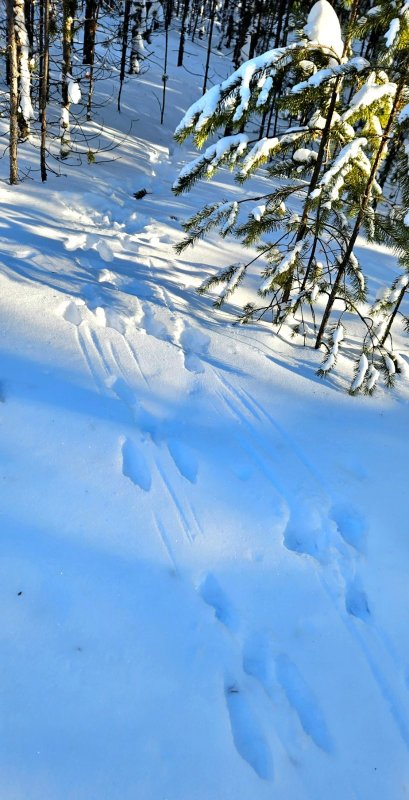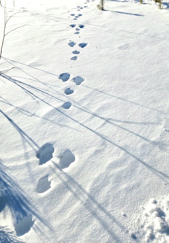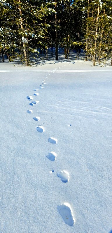 С нетерпением мчусь на одну из своих делянок с разведкой - пришли ли лисы? И, о, да! Их было несколько! От небольших до просто огромных, судя по отпечаткам рыжих мохнатых лап на свежем, выглаженном белоснежной скатертью, снегу. И, как обычно, вились лисьи тропки по следам зайцев-беляков, с периодическими вкраплениями небольших углублений от лап перебирающихся от ёлки к ёлке прыжками по снегу белок.
