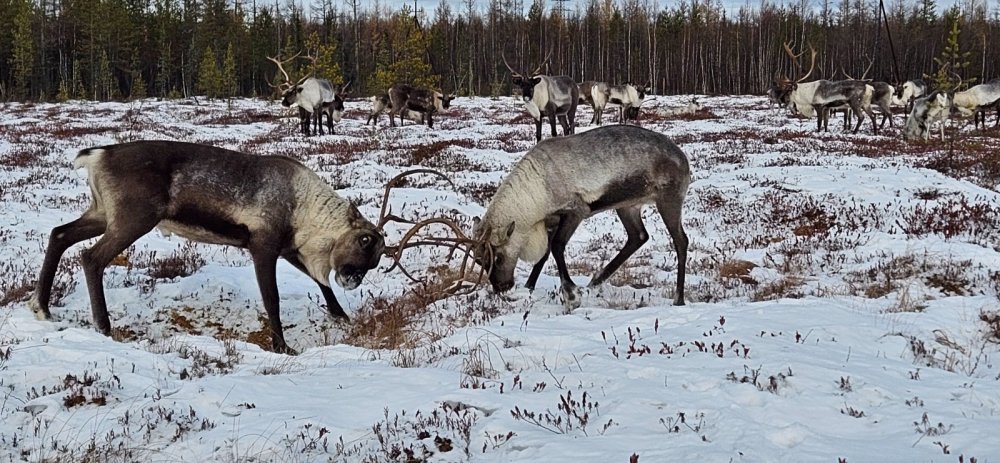 Метров за 400 олени меня учуяли и услышали, стали пристально смотреть в мою сторону, насторожились.