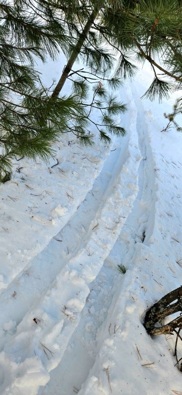 Но тут посторонний и приближающийся звук где-то в тайге заставил меня недюже напрячься и взбодриться. Как хронометр - в одном ритме, не сбиваясь что-то колюче шуршит по сегоходному треку. Тяжелое. Серьёзное!