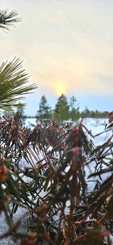 Присев на корточки, чтобы дотронуться до весны, чуть сознания не лишилась - здесь стоял такой аромат! На высоте примерно полметра над землёй царствовал и правил дурманящий тяжёлый и терпкий запах багульника! Воздух был липкий, пахло сладко-горькой наливной спелой брусникой, лимоном, полным легкой терпкости, прохладной свежести и пронзительно цитрусовой кислинки!