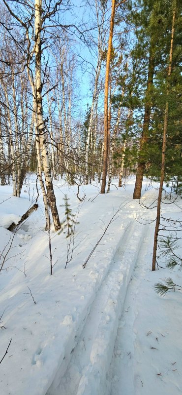 Ведут сюда теперь две дороги - покинутый и давний снегоходный трек и моя глубокая лыжня.