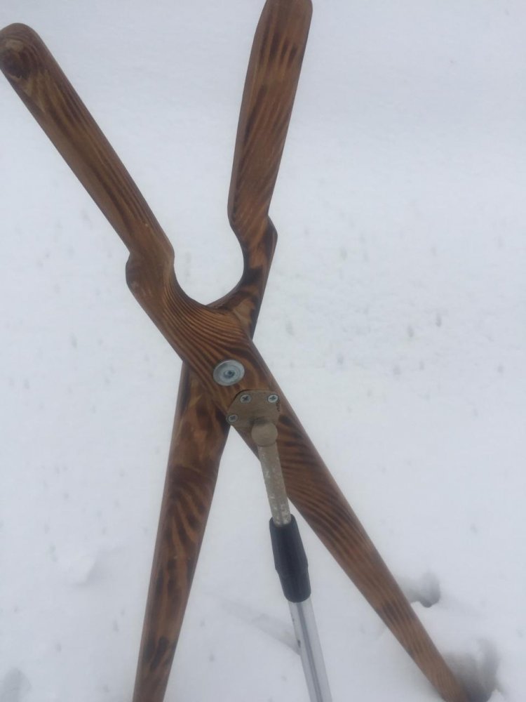 Самая настоящая охотничья "лыжная палка-сошка-каЕк" PHOTO-2020-02-29-18-58-03 (1).jpg PHOTO-2020-02-29-18-58-03.jpg на фото с лева. Хорошо виден изгиб, при крутом спуске садишься и подтормаживая съезжаешь. Рожки на конце палки для прицельного выстрела. Прямая палка ( правая) при ходовой охоте незаменимая спутница, прощупать брод, перепрыгнуть ручей, перейти брод, при спуске-подъеме, при ходьбе по косогорам, сбить росу с высокой травы, осыпать кухту-снег, НО и основное УПОР для стрельбы. Лучший материал черемуха, длинна выбирается сантиметров пять- семь выше головы охотника.