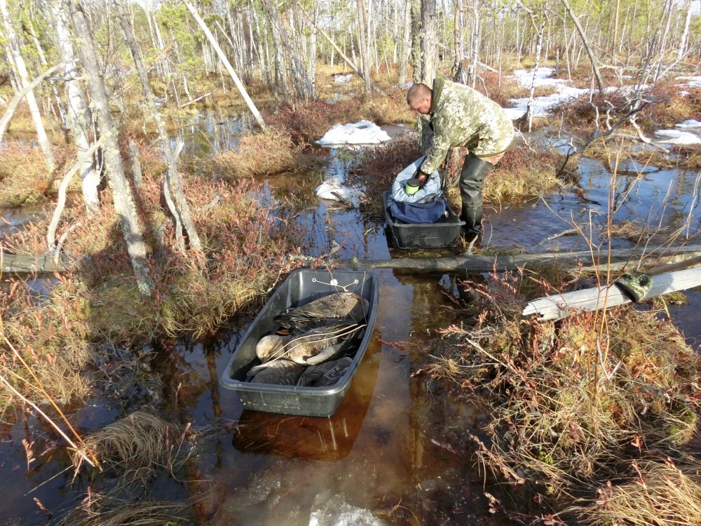 Вычерпал и все. Проще чем мерзлую землю весной долбить. Тоже такое в задумках, вот только беда: на перспективно поле, где пролёт идёт, имеется лужа хорошая, но каждый год сеют разные культуры. В прошлом году была чичивица, а она гусю не понравилась и соседнее поле с кукурузой ему больше подошло. В этом году там кругом семечка. И получится ли там поохотиться после таких трудов, не известно.