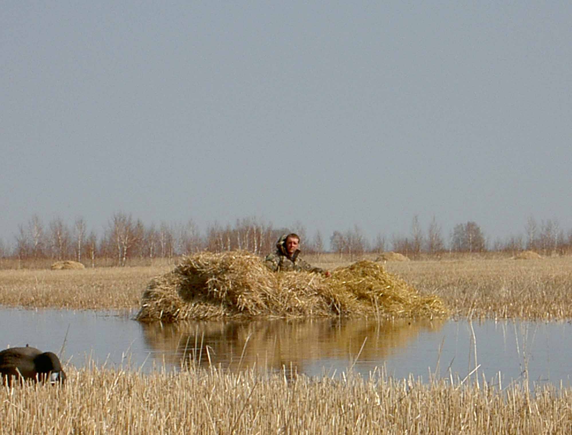 Самый лучший и самый простой скрадок- копёшка.Пользуюсь всегда,если есть возможность,из мешковины камуфляж скроил,на фоне соломы отлично смотрится и маскирует.