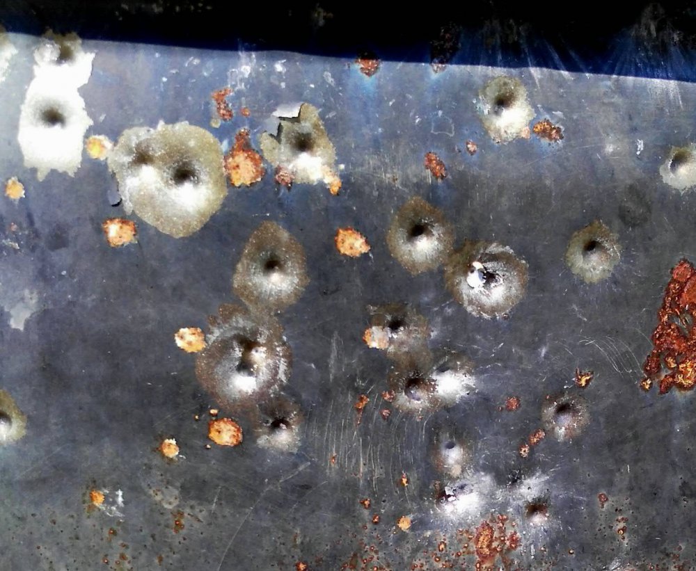 Народный способ "определения резкости боя", дробь 5-ка, дистанция 30м, Беретта А400, д/с 0,75мм, думаю утке хватит за глаза. Она хоть и в пере, но не железная.