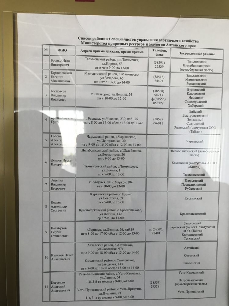 Адреса и телефоны охотничей администрации