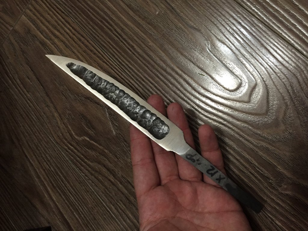 Вот и подождем мнение заказчиков) а пока кую из шх15 якута. Из клапана будет ещё клинок чуть позже. Ковка исключительно вручную и поэтому тяжело более 3 х клинков за короткий день сделать. Да и зима холодно( У следующих хвост будет по центру. Этот хвост можно к центру сдвинуть ковкой. Клинок не закаливался. Мне очень понравился. По основной геометрии правильный, толстенький.