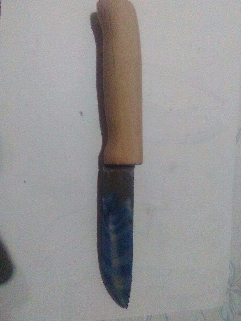 Якута отдам за тысячу чисто из за хвостика. Хвост изогнул для лучшего монтажа. Хвост длиной 6 см. Пробовал в тисках. Хороший крепкий. Клинок закален для морозов и древесины. Напильник для заточки цепей с большим нажимом едва царапает. При этом заточка на бруске и стойкость кромки хороши.