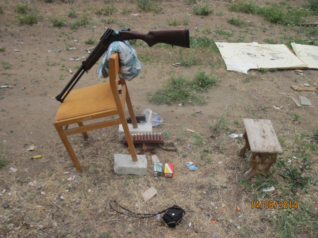 Стрелял вот с такого упора. Еще одна поездка на стрельбище и думаю я добьюсь результата, хочу прибить на 80 метров и гладкий и нарезной, при стрельбе дробью и картечью просто делать визуальные поправки.