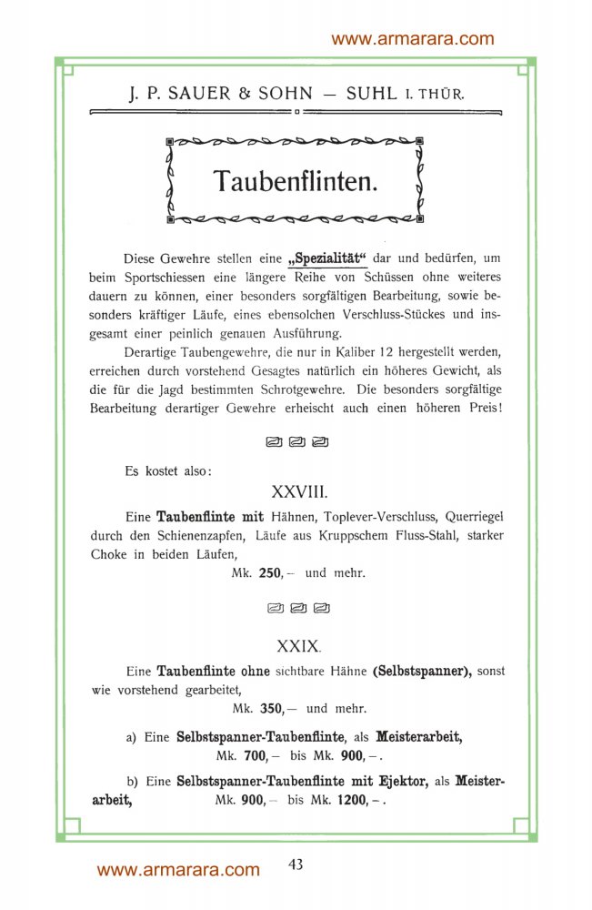 В каталоге 1906 года на картинке у модели XXVIII тоже льежские замки и написано, что голубиные ружья изготавливаются только 12 калибра. Так что пока название модели не ясно. Ждём появления новых фото со всеми клеймами. Тогда по номеру можно будет хотя бы год выпуска узнать.