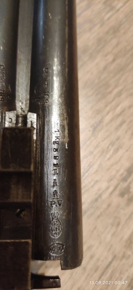 Доброй ночи участникам и знатокам форума. Имеется гладкоствольное охотничье ружье 12 калибра (стволы расположены горизонтально). Прошу помочь идентифицировать данное ружье: установить дату производства ружья, а также ориентировочную стоимость. Фото клейм прилагаю. Ружье приобреталось незапланированно 12 лет назад с документами, при этом мой настрел за весь срок владения всего 20 выстрелов. ПО состоянию: шатов нет, на прикладе есть несколько партаков, при просмотре стволов на свет видны раковины. Кучность в сравнении с ИЖ-27м лучше, в руках лежит замечательно, легкое. Заранее спасибо.