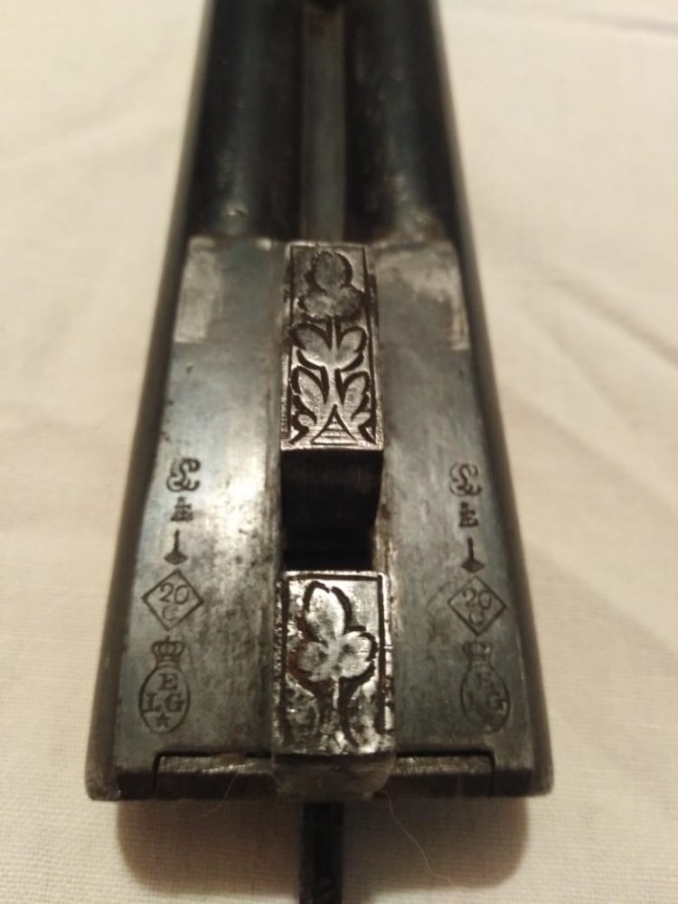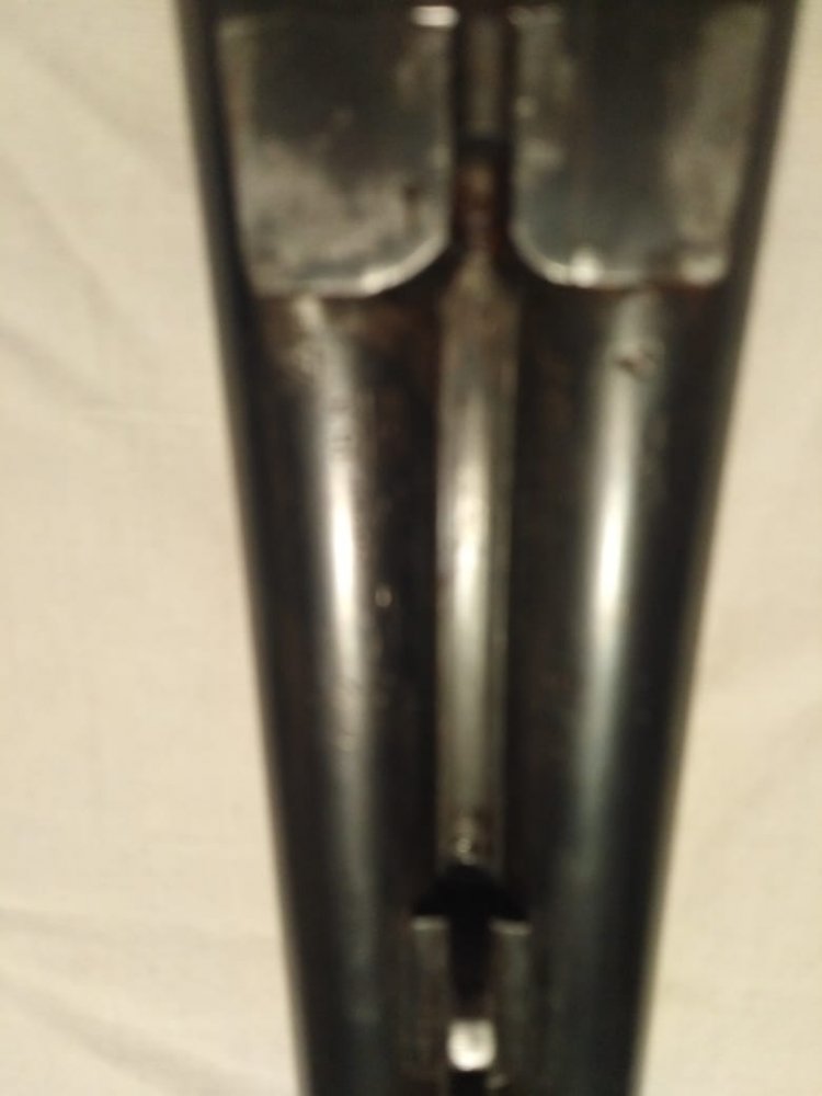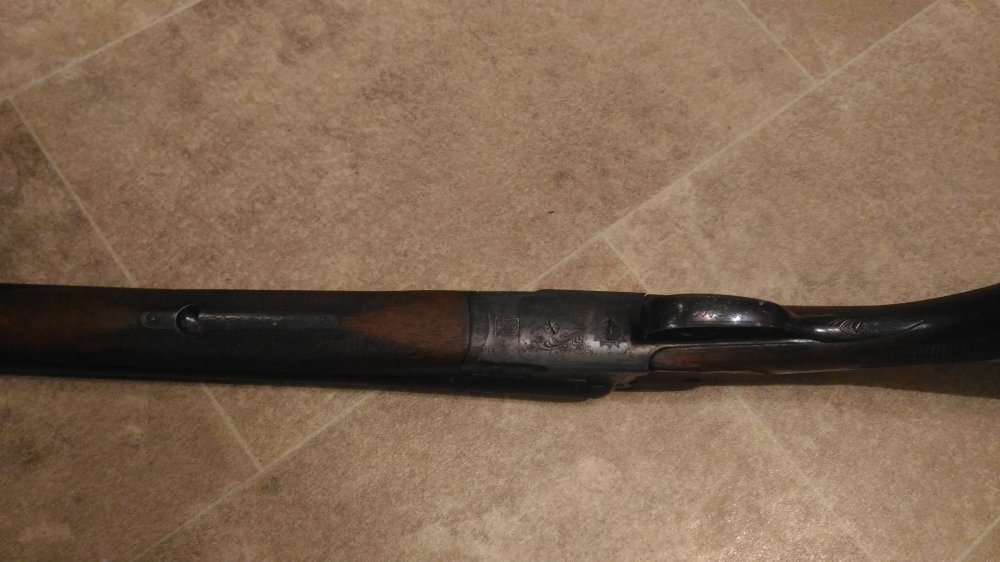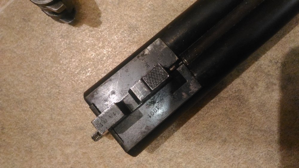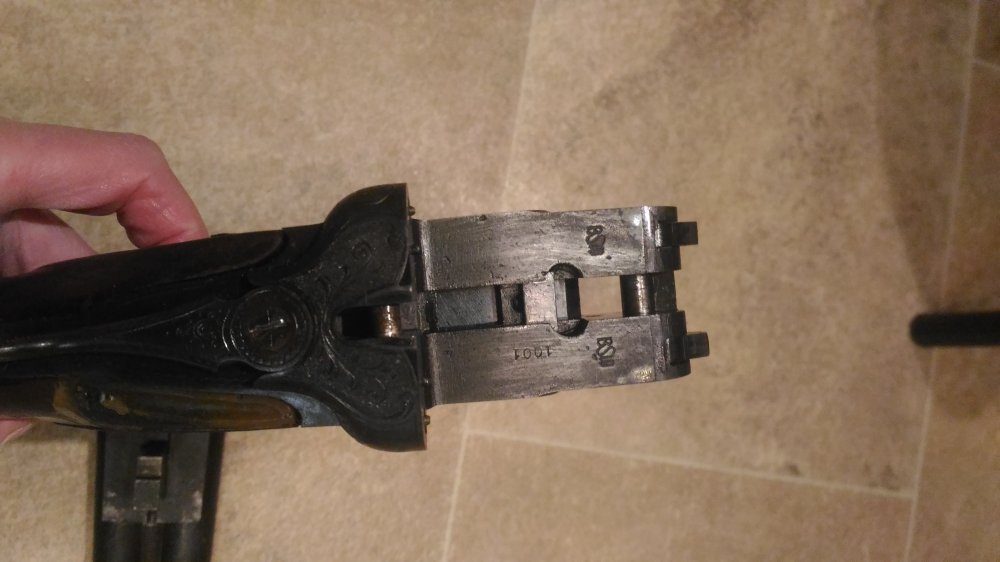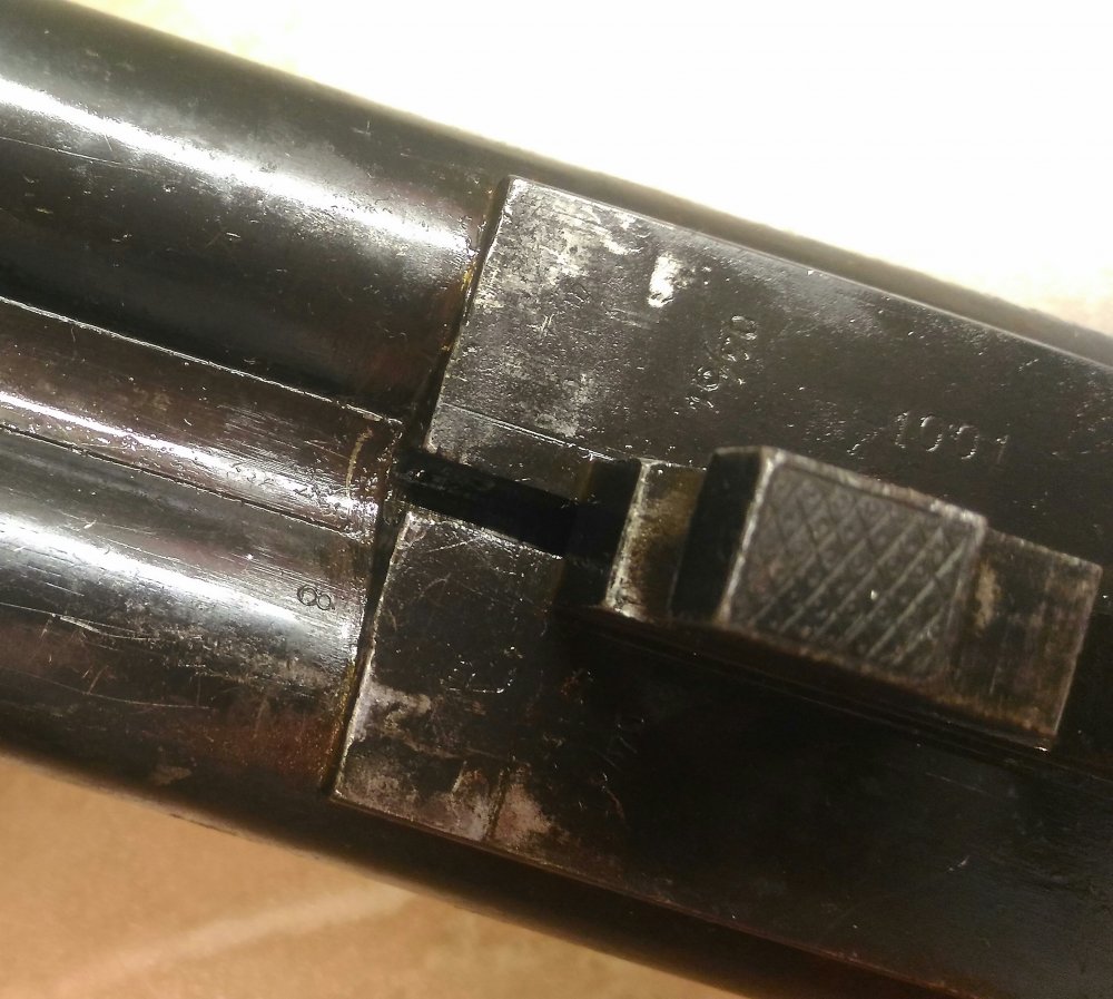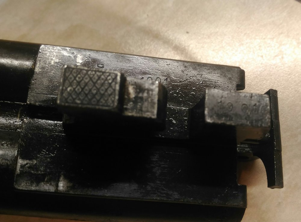 1001 повторяется на планке затворной коробки, там же есть клеймо bsw. на щитке коробки рядом с выходами бойков есть латунные подвижные штифты, наверное указатели наличия патронов.