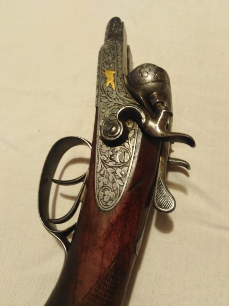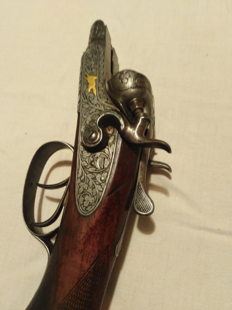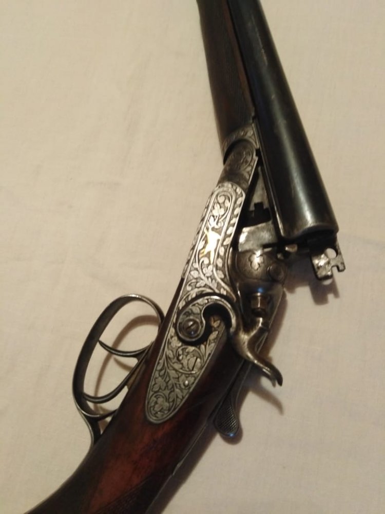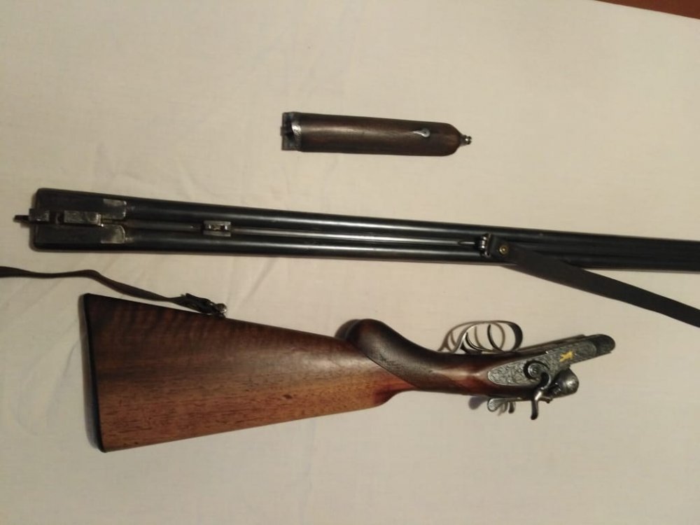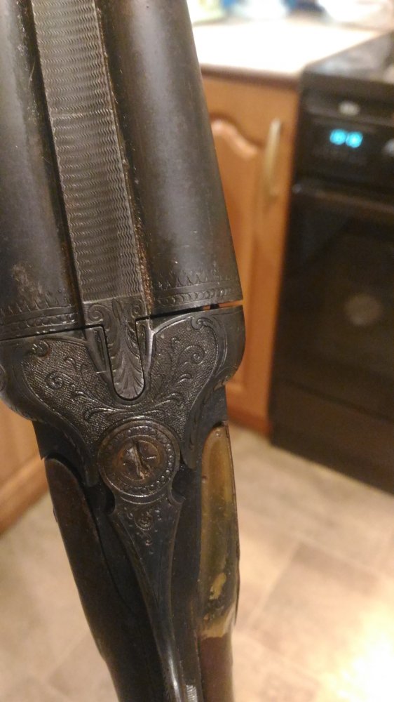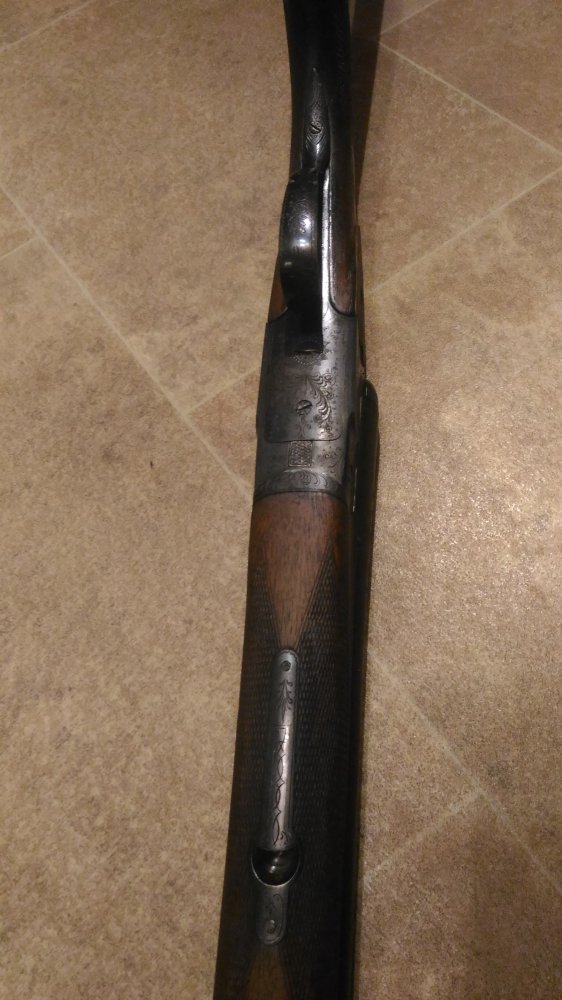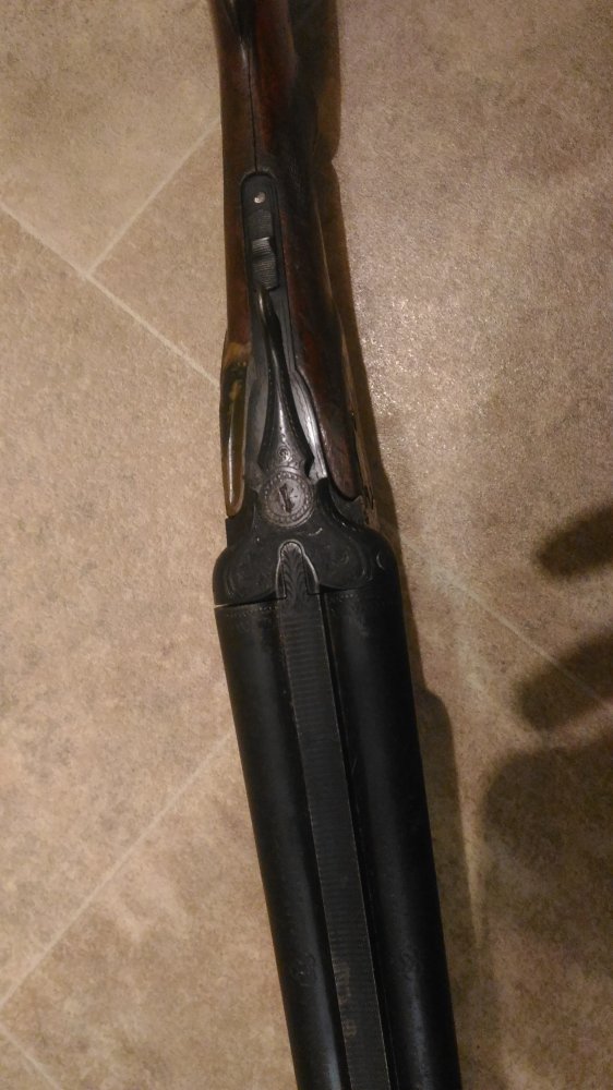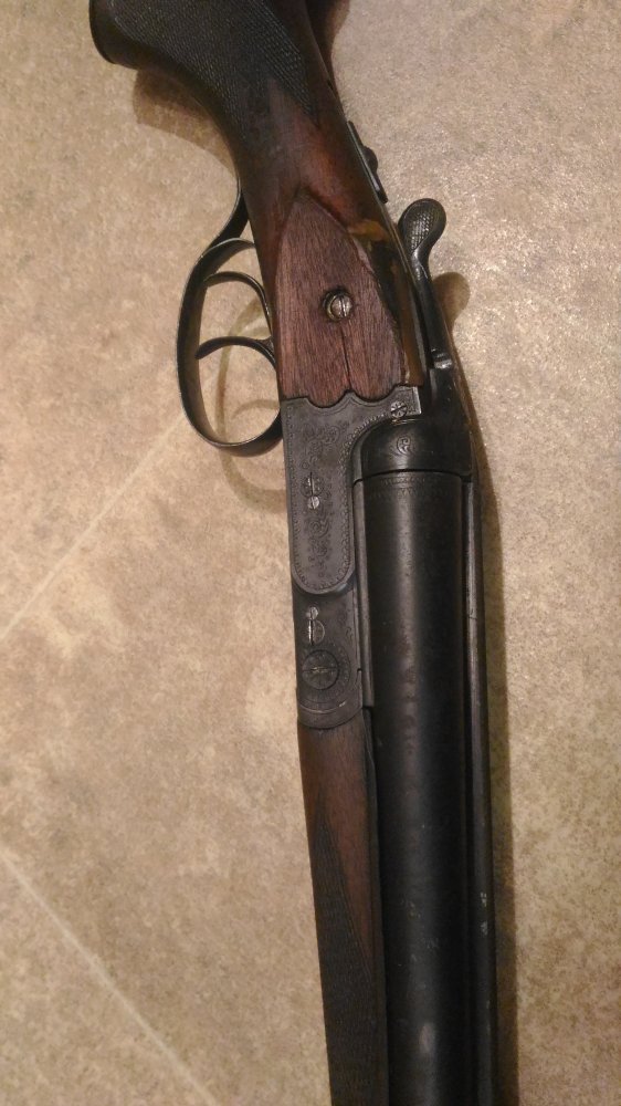 1001 повторяется на планке затворной коробки, там же есть клеймо bsw. на щитке коробки рядом с выходами бойков есть латунные подвижные штифты, наверное указатели наличия патронов.