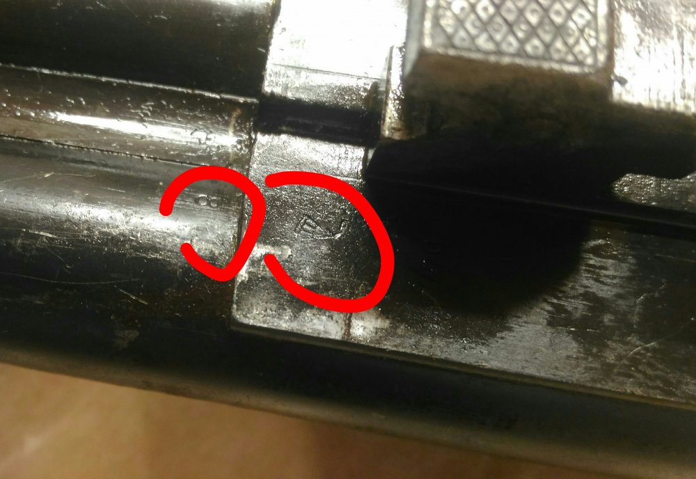 есть цифры 1001, они выбиты снизу стволов на плоскости, где крюки, снизу на правом стволе рядом с плоскостью крюков 8