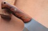 Попросил собрать товарищ для супруги небольшой кухонный топорик. Металл PGK, толщина 5,5 мм, ТО от Алана Баликоева твердость 61 HRc (при такой твердости достаточно вязкая железка) общая длина 316 мм, ширина 94 мм. Рукоять из аризонки , монтаж накладной на "Суперхват", штифты латунные.