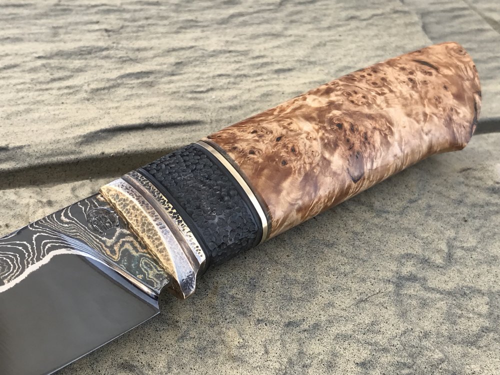 Приветствую всех!очередной нож якутского типа готов)клинок сталь 9хс кузнец Павел Пиданов)рукоять кап клена,рог лося,латунь...ножны в процессе..нож не продается (сделан под заказ)