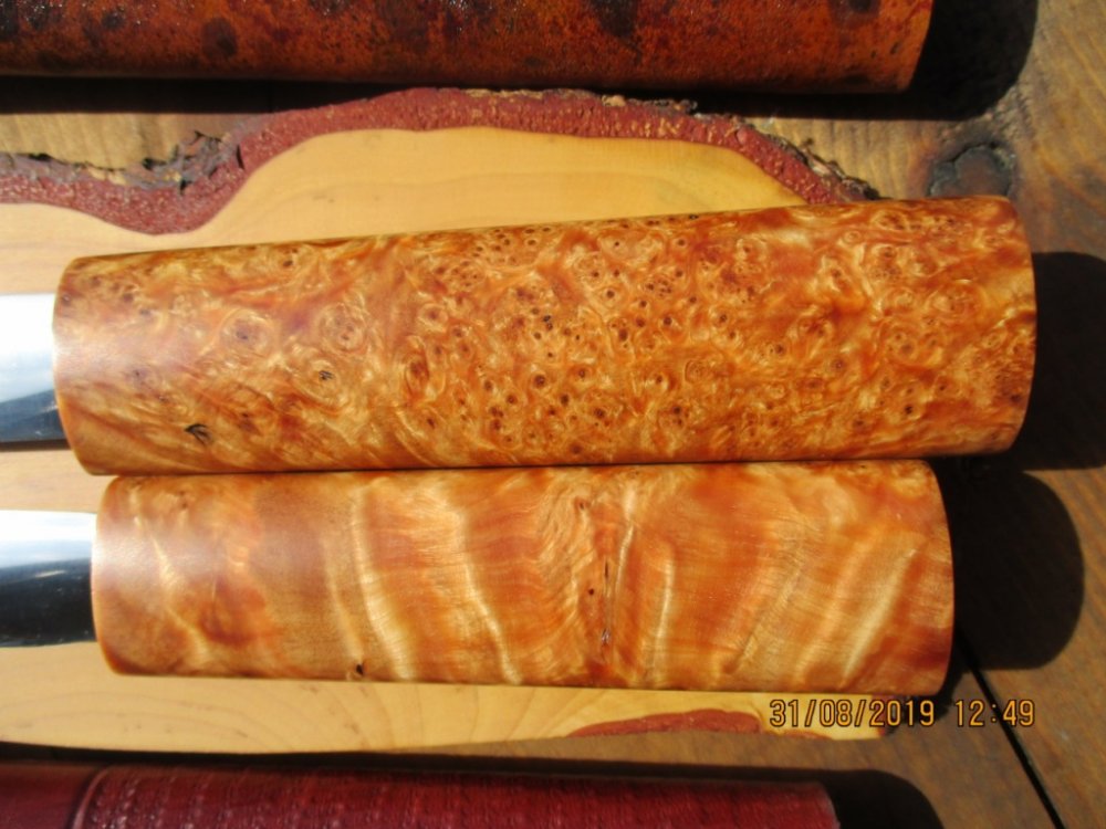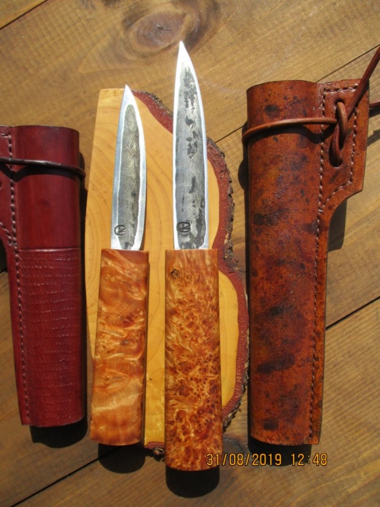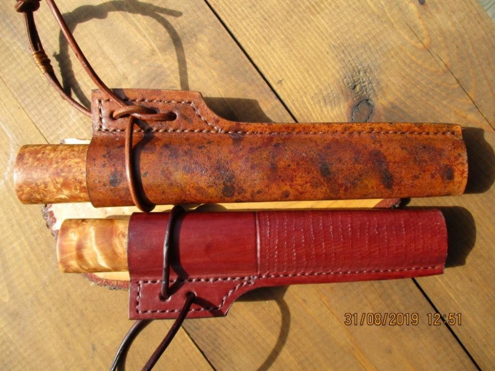 @Gerasim, По мне как то, кажется зря замутил с кровавой ручкой, эстетически отталкивает, да и потом после разделки запекшую кровь плохо смывать на красном фоне, так как при слабом свете ее будет не видно. А по швам на ножнах прогресс пошел в лучшую сторону по сравнению с теми, что раннее были изготовлены, уже приятно посмотреть на работу.