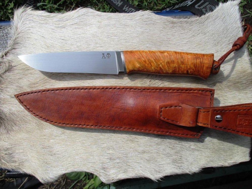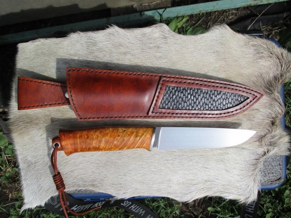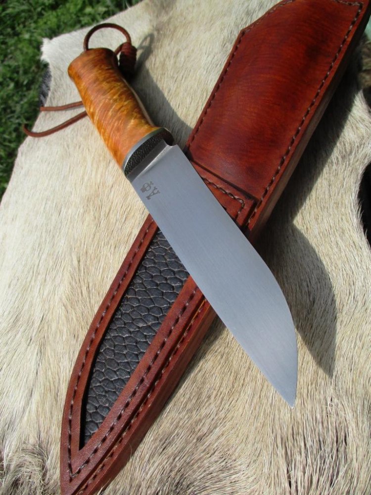 Всем привет. Новенького доделал. Сталь х12мф, клинок 122х30х3 мм, рукоять с карелки 120 мм, ножны кожа. IMG_20200809_221255_846.jpg IMG_20200809_190948.jpg IMG_20200809_190631.jpg