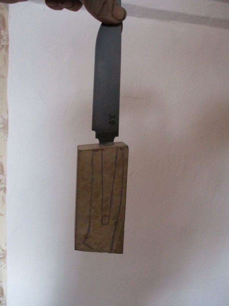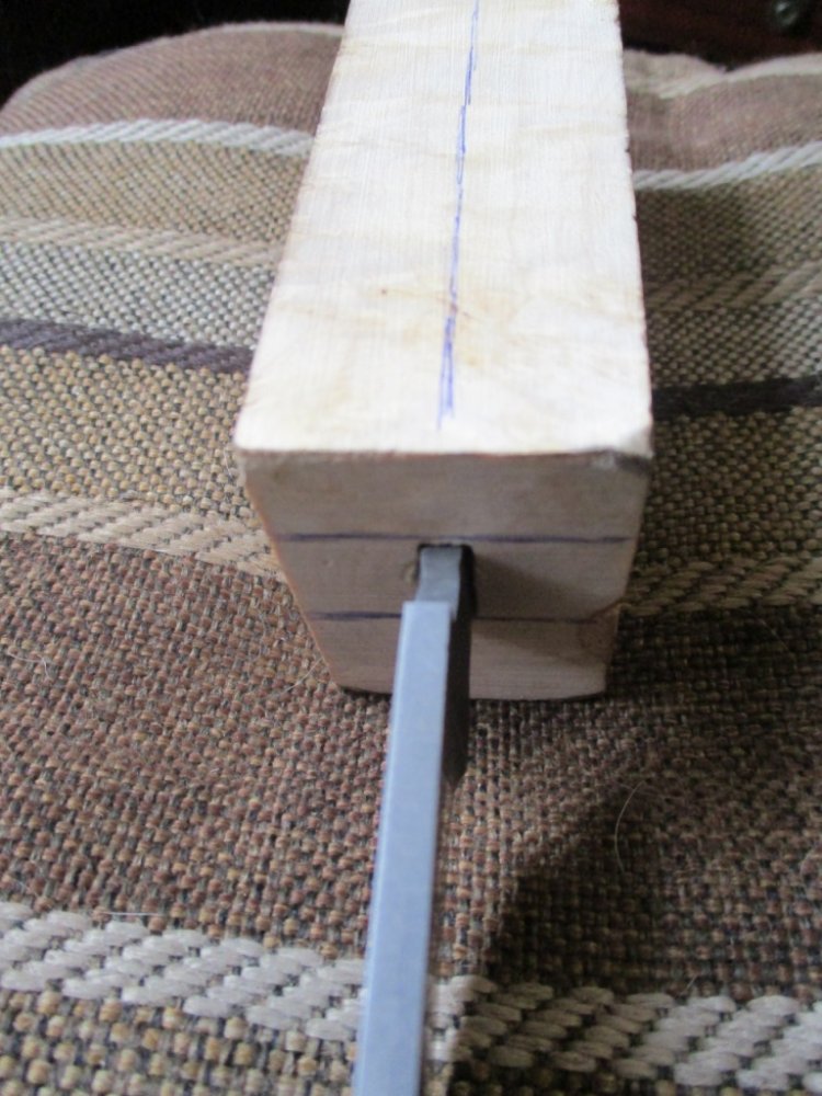 @272727, на 2 части распиливал брусок и выбирал под клинок лишнее, потом склеивал, можно конечно и в цельном бруске выточить, но смыслаусложнять задачу нету, да и тонких сверел такой длины нету чтоб просверлить, и точно по форме клинка все равно не выбрать отверстие в цельном бруске