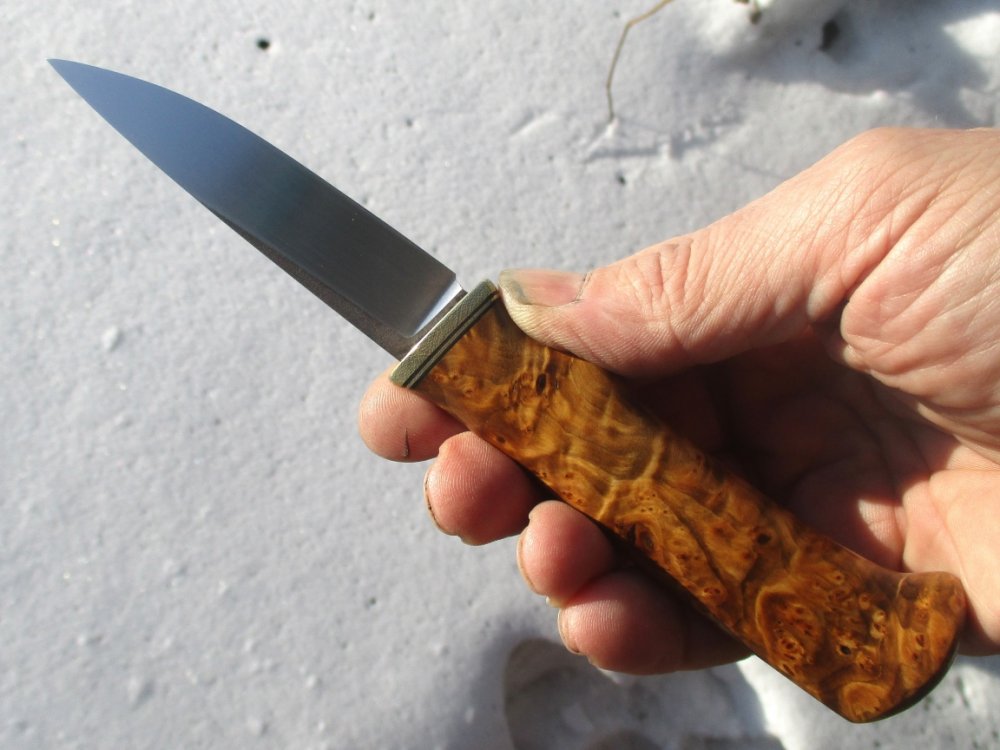 PXL_20240217_103315298.jpg PXL_20240217_103116331.jpg PXL_20240217_102905990.jpg Сталь м398, 130х30х3,5 мм, рукоять 122 мм из стабилизированного капа клёна, нейзильбер, латунь, мозаичный пин, ножны из кожи растительного дубления. Посмотреть вложение 275508 PXL_20240217_103116331.jpg