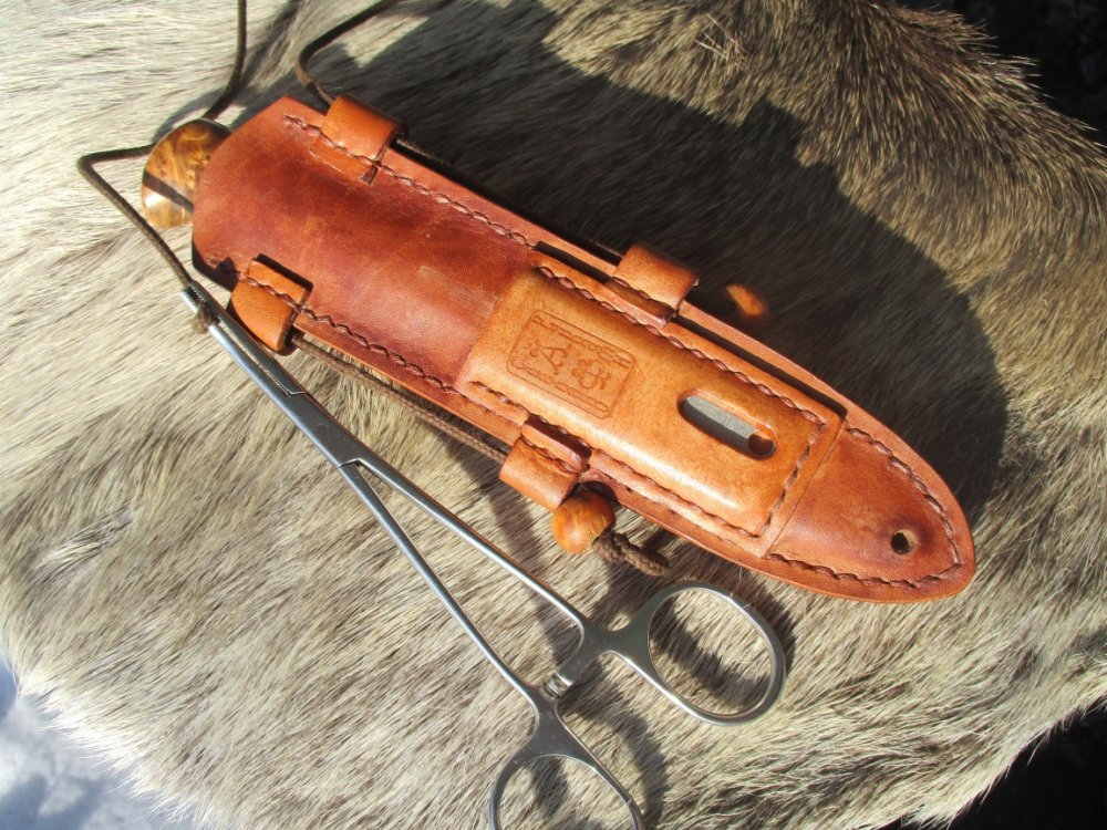 Ножны из кожи растительного дубления толщиной 2,9 мм, окрашены химией SAPHIR, покрыты финишем на основе масел и воска, подвес свободный.