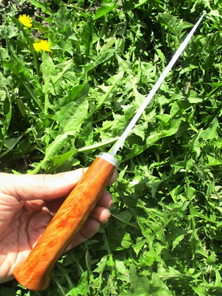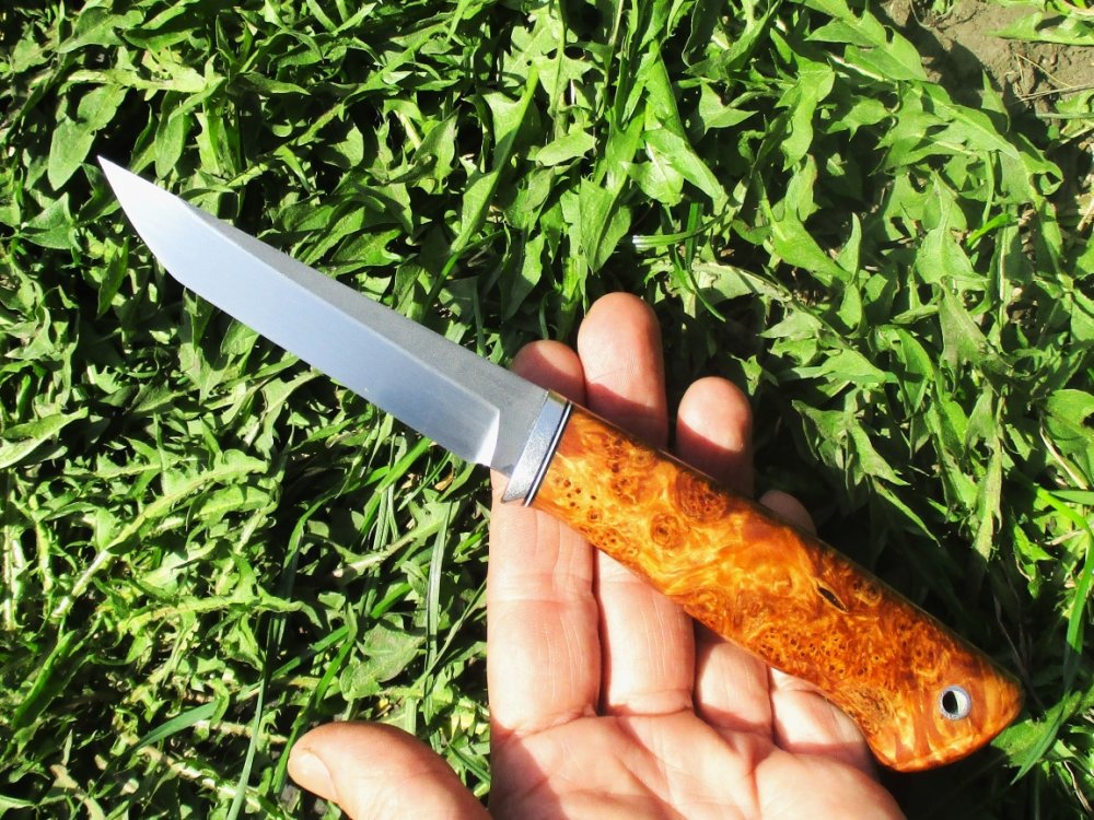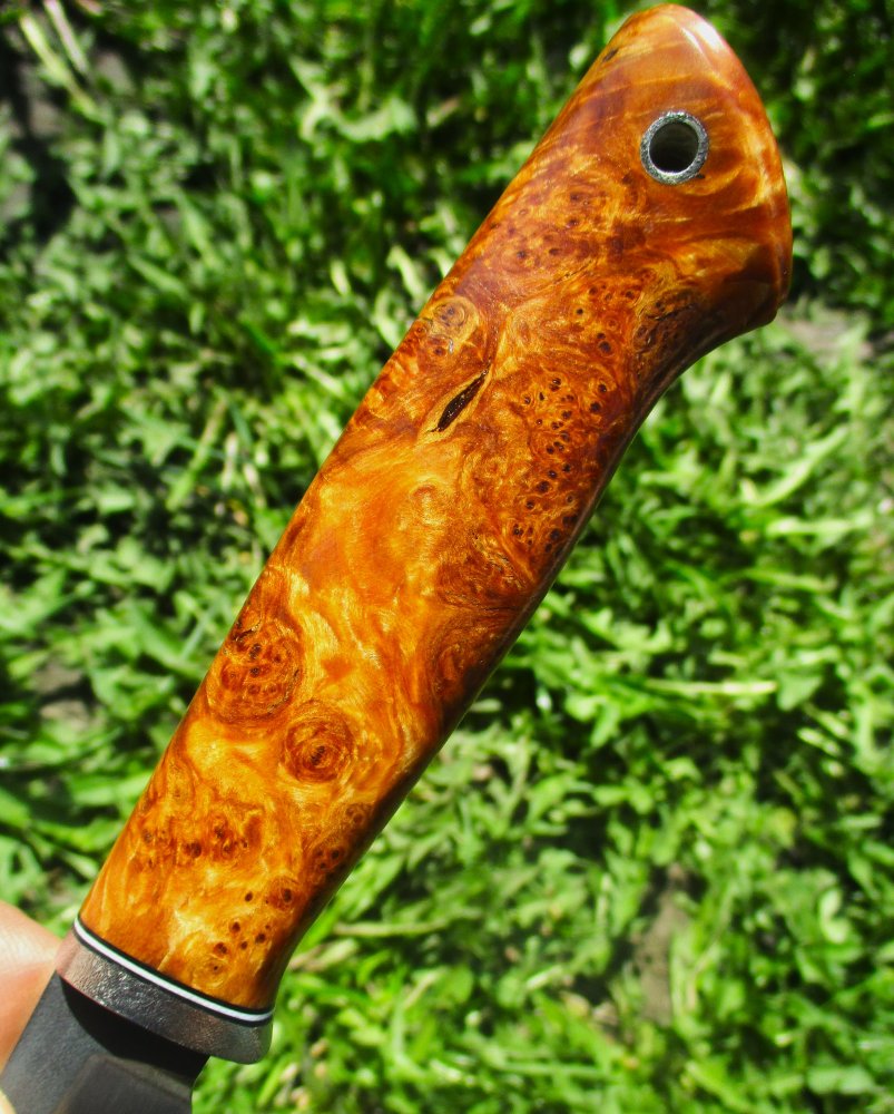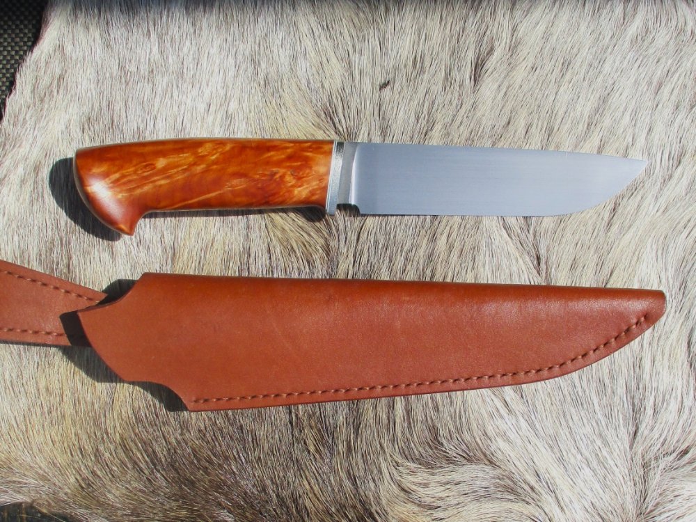 Всем МИРНожичек для форумчанина)))Клин-CPR в термичке С Бурова .Слесарка моя.143х31х3.9 сведён 0.5 не точен.Сатин повдоль Р800. Рукоять-кап Берёзы,нейзильбер,г-10.Ножны хромка сквозного прокраса.