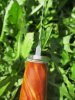 "Перчик" сталь QPM53, клинок 130х30х3,5 мм, травление + галтовка, рукоять 120 мм из микарты, нейзильбер и шарик на тыльнике с латуни под патиной, ножны из кожи растительного дубления.