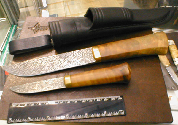 классика на зверовой охоте кинжал и скинер. леуку на лагерный не тянет, что я таким ножом в лагере делать буду. снаряжение починю, обед приготовлю? переделать его в классический скинер. добавить пару финок в 15-17 см. и сделать 2 набора: зверовой и птичий в парных ножнах. имхо. опять же на любителя.
