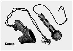 Однако способ нагнетания в дудочку воздуха и конструкция самого манка в Средней Азии совершенно другие. Основа для киркэ вытачивается из цельного куска дерева, но состоит как бы из нескольких частей. Обязательны удлинённая «консоль» с канавкой для крепления дудочки и округлая часть с углублением (диаметр около 3 см, глубина 6-7 мм).
