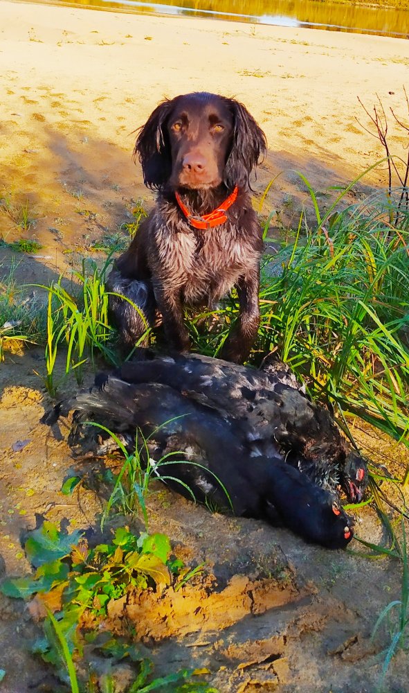 Это вообще личное ;) Если коротко - у меня были лайки, сеттер (англичанка), дратхаарша, ретривер. У всех есть какие то крайности по быту, поведению в лесу, темпераменту.....Вахтель просто золотая середина для моих охот . И вообще у меня с ней любовь:D На сунготи.jpg