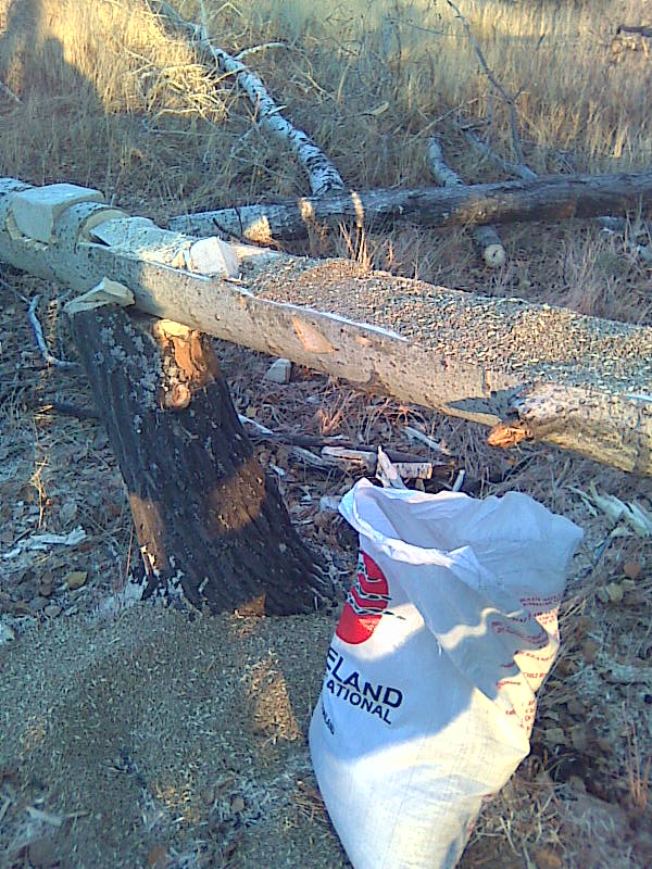 Ф2. Года три назад сделал солонец из бревна осины-соль засыпал мелкую, в этом году положил в него лизунец