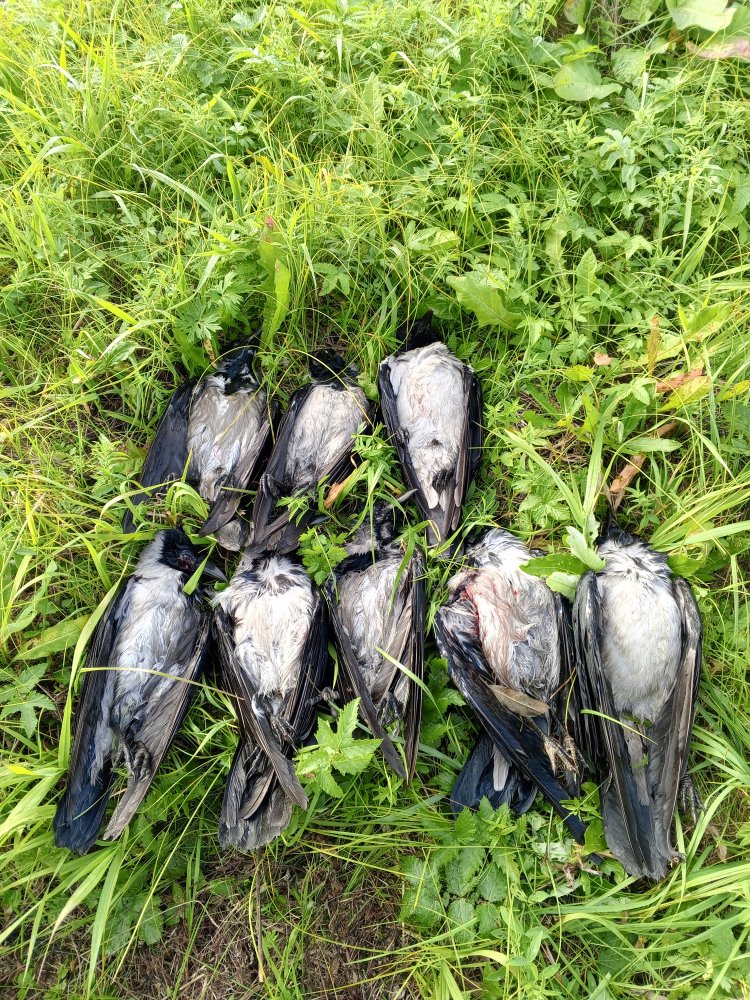 6 серых, сегодня с утра. Одна из них, отличались, особо крупным размерами. Видно, не одно поколение вырастила.