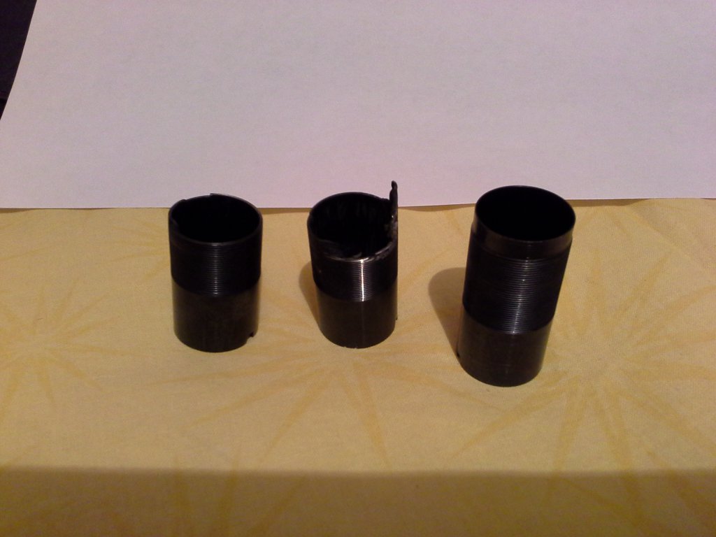 Вот так выглядят втулки разбитые, две справа после стрельбы, слева новая.