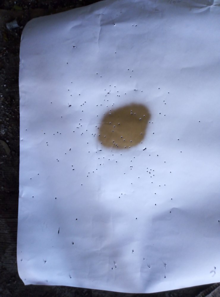 Стреляли с упора, расстояние 25 метров, патроны самокрут, дробь 5-ка, 32 грамма, пыж-контейнер ГП Н-21, порох G3000, 1,65гр, капсюль СХ2000, гильза Феттер б/у со стенда.