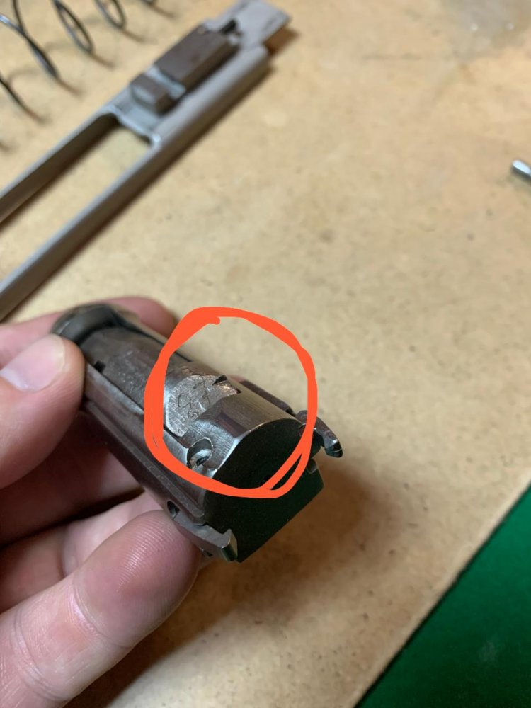 Эти повреждения все от патрона, подаваемого из магазина, кроме клина.