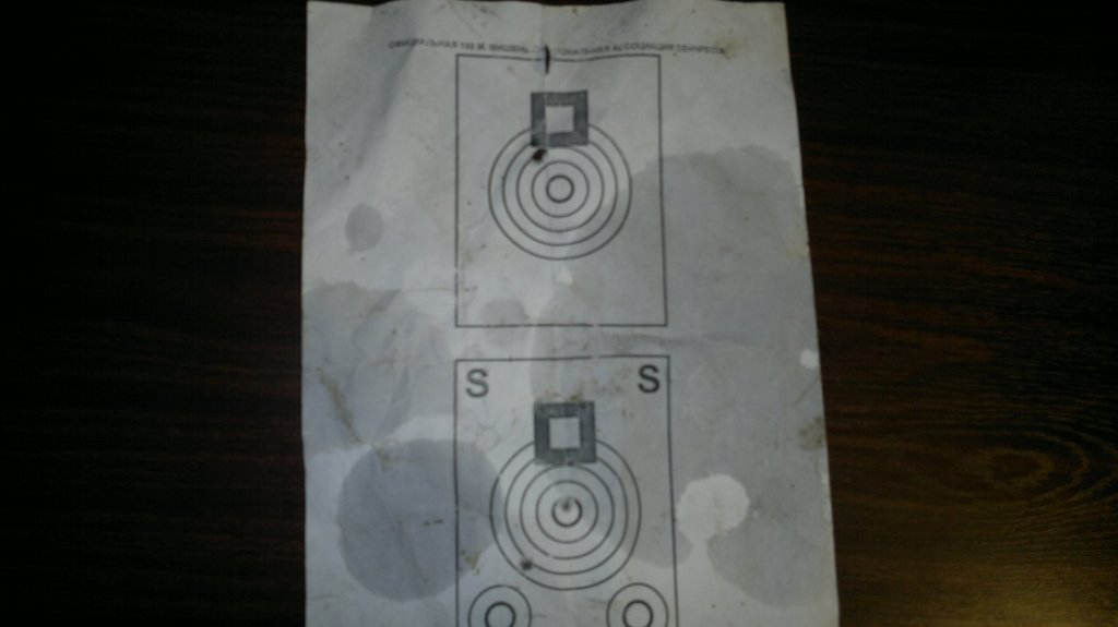 Вот крайняя мишенька не из снайперской Т3, сбил прицел, настраивал верхняя на сто и не один выстрел, нижняя на двести, после корректировки