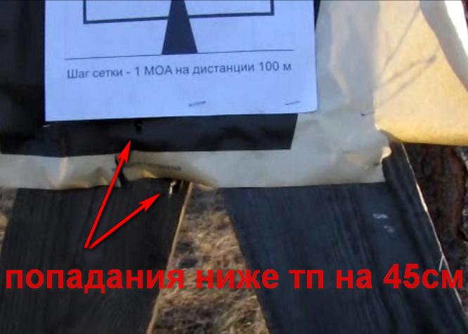 А патроны закончились. Сейчас у нас НПЗ 9,3г очень редко можно увидеть в магазине и расстреливал старые запасы. Вот остатки и пульнул по мишени. А так как стрелял в сильный ветер и порывы были существенными, то второй выстрел пришелся как раз на такой порыв ветра, что потом увидел на видеозаписи. Кстати на видео красиво виден след от летящей пули в мишень в виде завихрения потока воздуха. Если это попадание выбросить как не показательное (точнее показательное на влияние ветра на полет пули , кстати это всего около 15см на такую дистанцию Рис 5) , то по двум гарантированным попаданиям получилось 75мм (Рис 6) , что на пересчет к 100м дает 21мм, что в общем то у меня и получалось на 100м. А те, которые занизились попадания - еще кучнее.