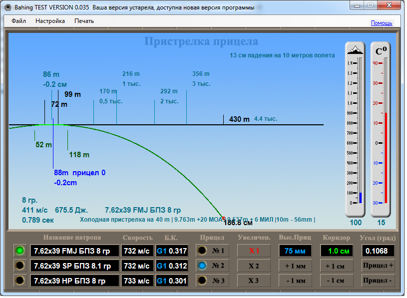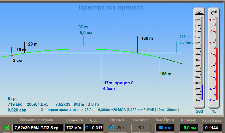Для точного расчета мне нужно знать патрон, погодные условия, высоту оси прицела над осью ствола. Я забивал примерно.