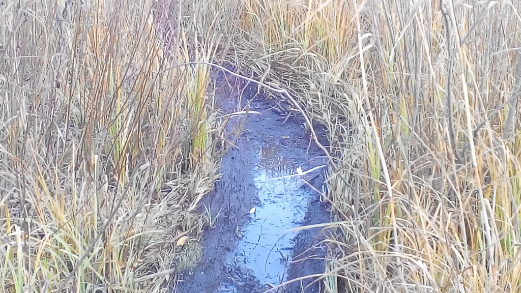 каналы сухие ,воды не видно !!! А погрзыы свежие ? А то походу на брошенную хату то ,можно больше фоток ?Каналы обычно ведут к кормушкам и переходят от ручья к ручью ,но тут они без воды ,у хатки фото по больше с делать бы ,а если входы открытые ,то брошена точно . Так могут изредка навещать это место из за хорошей кормовой базы .