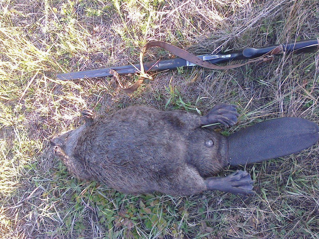 Как то раз стрелял бобра в конце октября, вечером. Он долго возился в кустах, тряслась здоровая талина и уже в темноте высунулся на открытое место. Выстрелил с 15 метров, темно - ничего не пойму.Поехал спать. На утро прихожу - лежит вмерзший в лед - за ночь образовавшийся. Лед под сапогами проваливался - а вот добычу держал отлично. Я этого бобра - довольно крупного, по льду запустил как шайбу - летел до берега без остановки.
