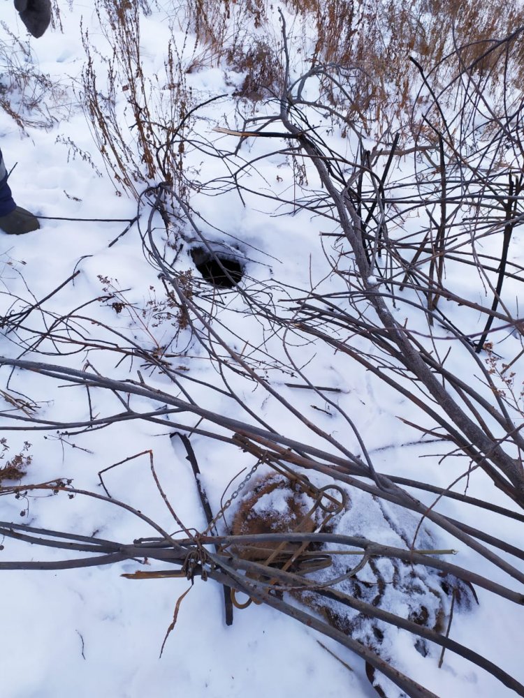 Поехали сниматься, неделю уже без добычи, дважды по пути откапывали УАЗик, все капканы пустые, а вот в последнем снова подарочек, ставили на тропе, крупный, пока не взвешивали, но точно больше 20.