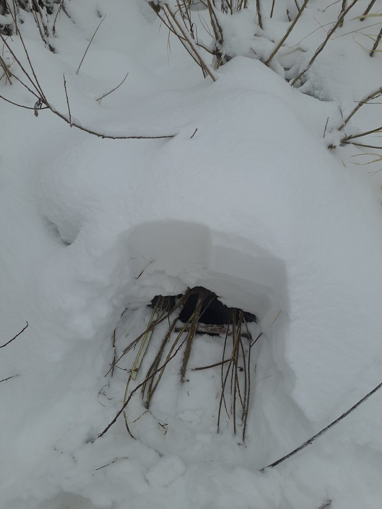 Утром мороз под 35. Решили капкан снять, так как мог вмерзнуть. Когда пришли к месту, оказалось что бобр уже сидел в капкане. Пытался вытащить ща тросик с берега, но не получалось- бобр крупный и течение в том месте сильное. Пришлось ползком подползти к этой майне и тянуть бобра на себя. Когда уже почти вытянул, лед проломился и я окунулся. Хорошо что предварительно снял куртку и свитер. Пулей вылетел на берег (глубина была чуть меньше чем по грудь.) Термуху отжал, штаны не сильно промокли, а вот Баффины напитались до краев. Чулки отжал и скорее на лыжи бегом в деревню. Частенько останавливались что бы отжать чулки сапог. Вот тогда я понял что такое термоноски и "правильные" чулки (вкладыши) в сапоги - ноги даже не замерзли, хотя штаны стояли колом и в коленях не сгибались. Теперь у меня не только 4 пары термоносков, но и пара термотрусов!:D:good: