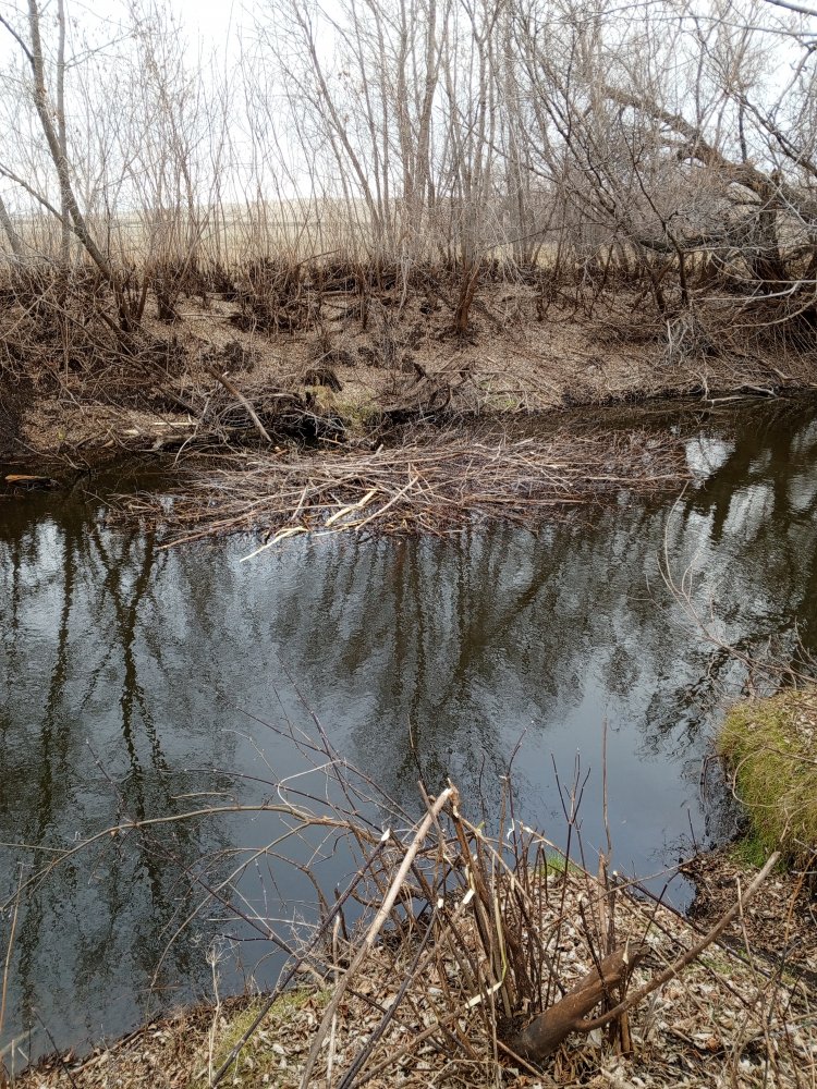 Хорошее место. У нас редко такие большие хатки. Нашел в одном месте на ручье плотина.Около плотины живут два небольших бобра,вверху метров 200 крупный один.Он уже заготовил веток нормально.Интересно если я крупного добуду,эти два воспользуются его запасами веток и норой.Сверху воды будет достаточно зимой,а около плотины она упадет на метр,как лед встанет.