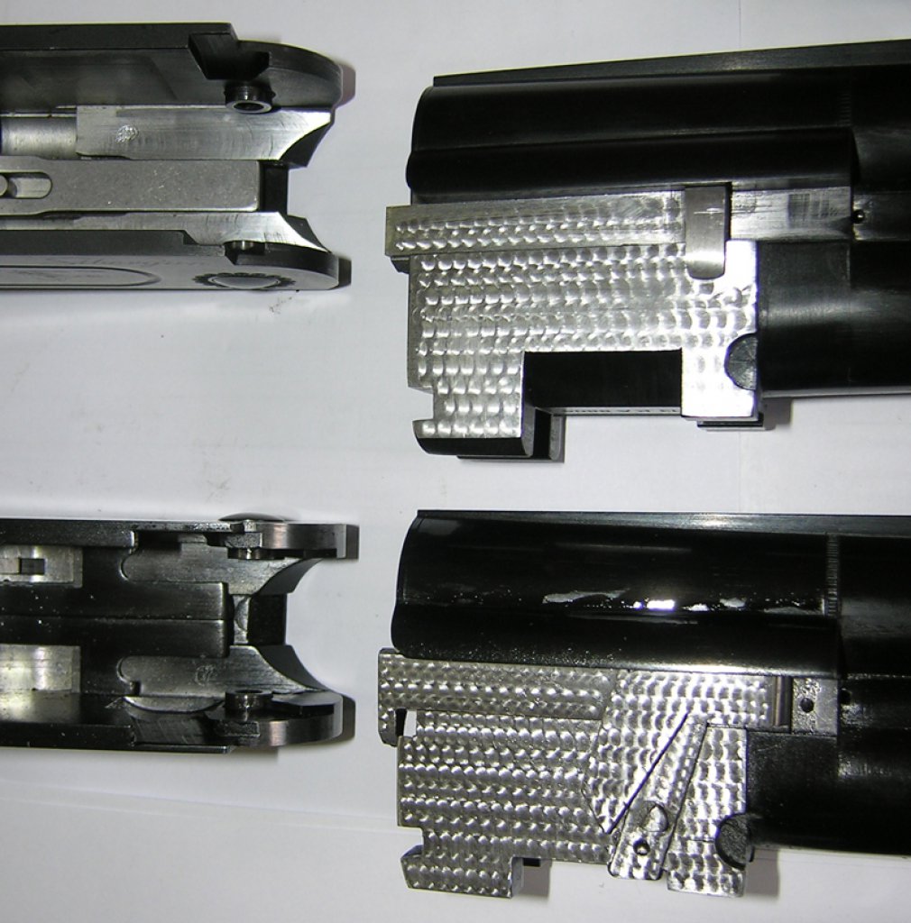 Но это мелочи зато обратите внимание на толщину опорных радиусов шарнира ствольной коробки у Сибера и Хана, на защелку цевья, как расположены боевые пружины и на то что за счет использования более дорогой хроммолибденванадиевой стали более толстую ствольную коробку у Хана удалось сделать легче чем у Сибера