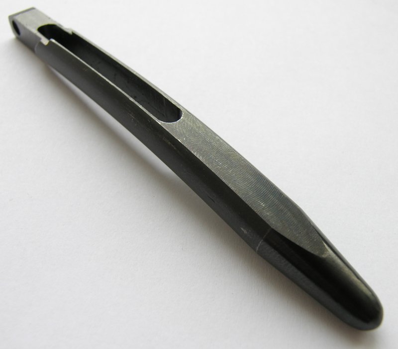 Фото хвостовика не очень удачное. Вы показываете только конец хвостовика с наклепом, который ни на что не влияет. Это "технологический наклеп". Конец хвостовика старого типа был острым ( его таким изготавливать проще было), а трубка возвратной пружины (дет.19) в месте куда хвостовик упирался "чашеобразная". И наклеп образовывался во время приработки двух поверхностей с разной геометрией. Острый конец принимал форму чашки трубки возвратной пружины . Нас же интересовала средняя и задняя часть хвостовика.