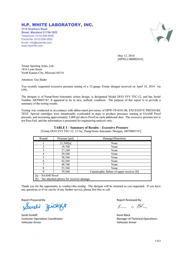 Хан сломался при давлении 4106 Bar Бенелли при давлении 2644.8 Bar